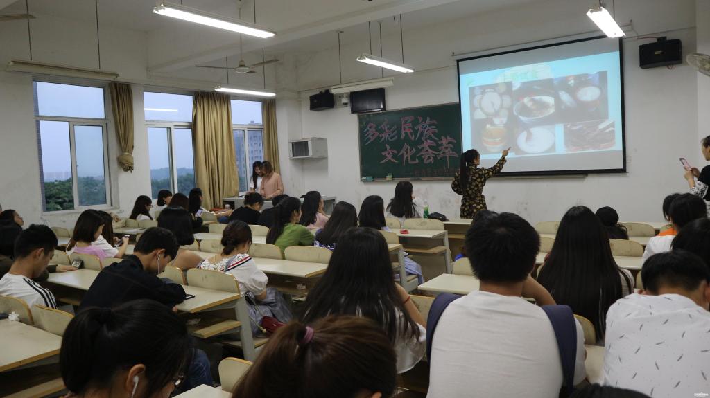 活动伊始,主持人马珂以互动的方式向大家介绍了我国的55个少数民族及基本情况。随后来自17会计(10)班的彝族同学蒋崇瑜、17会计(8)班的藏族同学索南巴忠、卓玛才让分别展示了各自民族的服饰、装饰,讲述其历史由来及发展,有的同学结合视频为我们解读民俗歌曲与舞蹈、饮食习惯与美食以及独特的民族文化,双语的转换、幽默的表达,让在座的观众感受不同民族文化的魅力和风采。