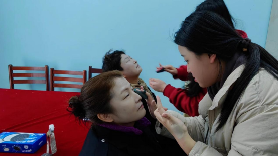 学生正在为宿管阿姨化妆