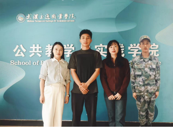 短视频比赛获奖师生合影(从左至右:余姜玮、刘译阳、王娟、罗纬琛)