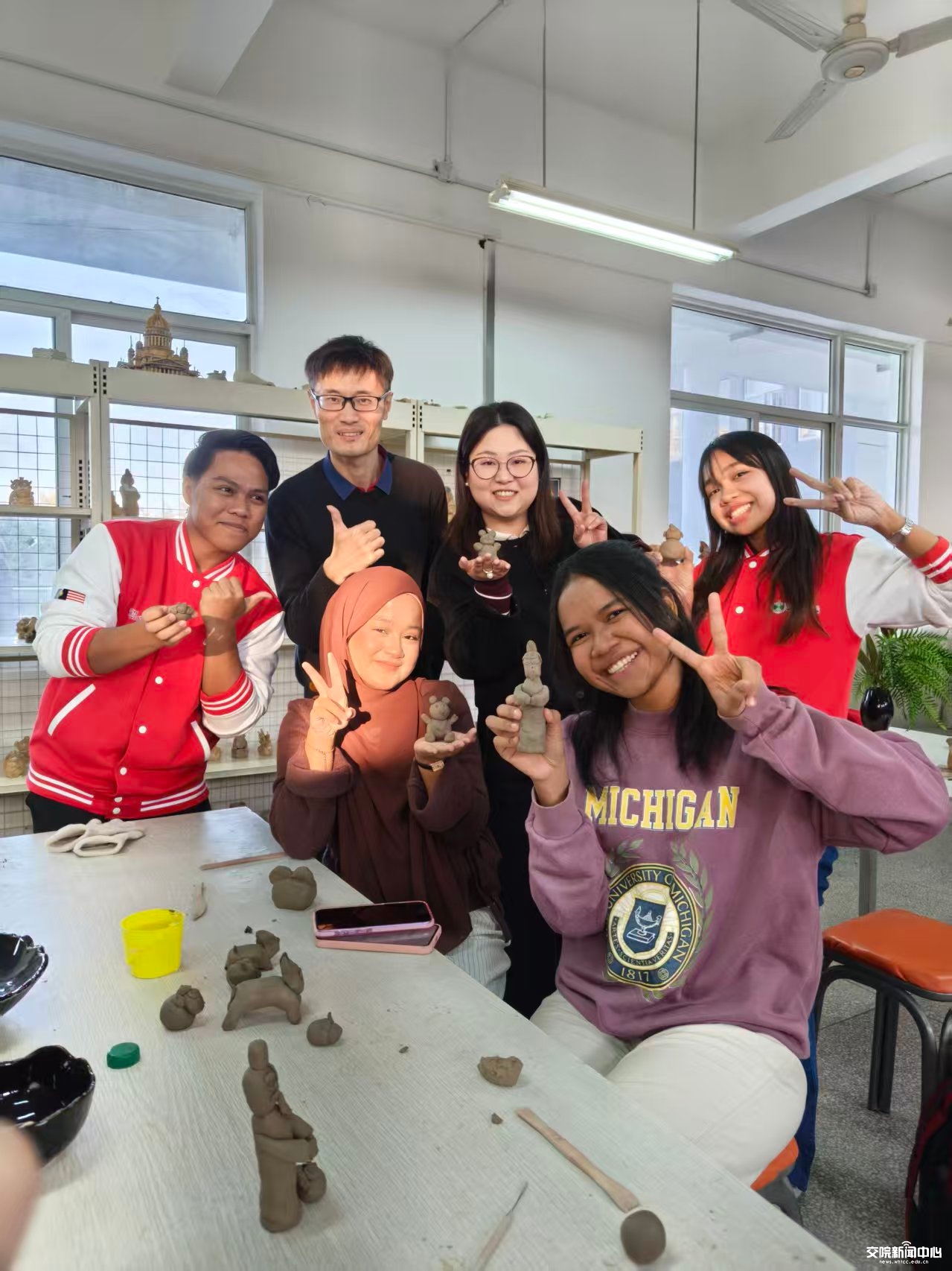 新闻网讯(通讯员 孟斐)11月28日,艺术设计学院的陶艺工作室暖意融融,在校外事处牵头下,31名马来西亚来华师生齐聚一堂,以手为器、以泥为媒,用传统手捏成型法复刻《西游记》《十二生肖》经典人物和动物,在指尖创作中感受中国古典文化与陶艺技艺的双重魅力。