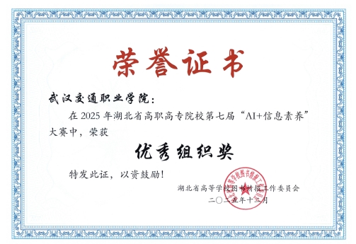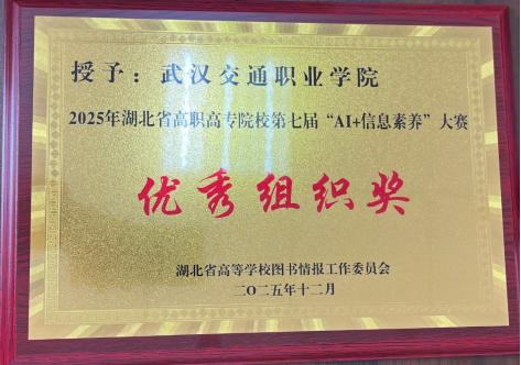 新闻网讯(通讯员 姜玲)近日,湖北省高职高专院校第七届“AI+信息素养”大赛传来捷报,我校参赛团队荣获二等奖,学生荣获个人奖项一等奖1个、二等奖3个、三等奖2个,获奖选手分别来自人工智能学院、低空与航天装备学院、港航与路桥工程学院、经济管理学院、船舶与海洋工程学院。我校图书馆再获“优秀组织单位”荣誉称号。