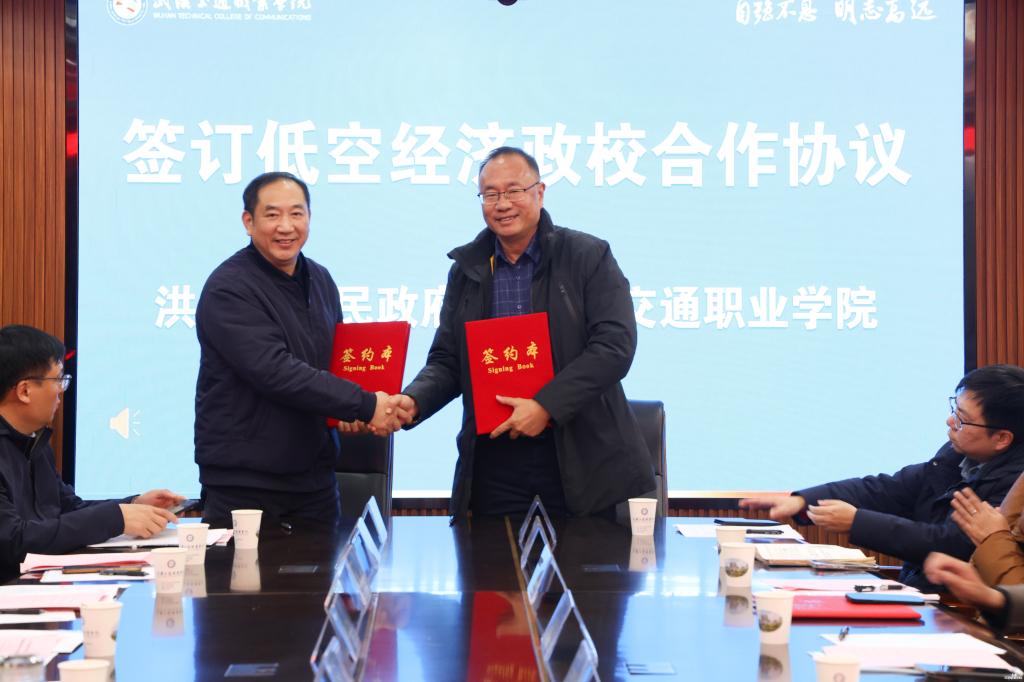 在与会嘉宾的共同见证下,会议举行了政校企签约仪式。武汉市洪山区人民政府与学校签署了低空经济政校合作框架协议;学校与湖北省低空综合服务有限责任公司签署了校企战略合作协议。两项协议的签署,标志着学校在深化政校行企协同、服务低空经济新兴产业发展方面迈出了更为坚实的步伐。