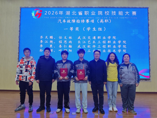 新闻网讯(记者 穆雨 通讯员 张威)近日,2026年湖北省职业院校技能大赛“汽车故障检修赛项”在襄阳科技职业学院落幕。我校学生齐天赐、任义林凭借扎实的专业功底和出色的临场发挥,在37支参赛队伍中脱颖而出,荣获学生赛一等奖;教师徐美滟凭借全面稳定的综合表现,获教师赛二等奖,充分展现了我校在汽车类专业人才培养与师资队伍建设方面的硬实力。