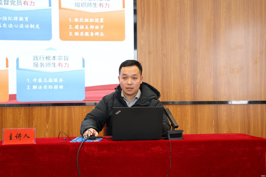 1月15日上午,培训班在明志楼1号会议室正式开班。党委书记向家文出席开班仪式并为全体学员上了内涵丰富、寓意深远的“开班第一课”。向家文带领学员们系统学习了党的十八大以来习近平总书记关于干部队伍建设的系列重要论述,围绕坚定理想信念、严守廉洁自律、锤炼扎实作风等方面进行了深入阐述。他勉励年轻干部要进一步提高思想认识和政治站位,切实增强责任感与使命感,在学校高质量发展的新征程中勇担重任、积极作为。