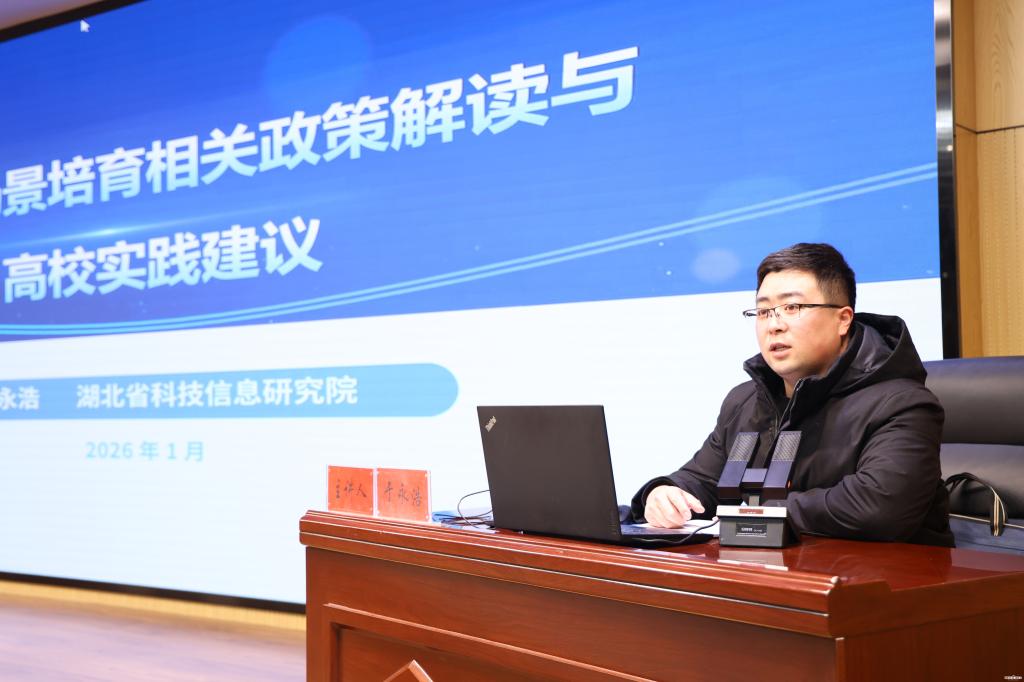 学校特邀中共湖北省委党校王能应教授作专题辅导,深入解读湖北省第十二届委员会第十一次全体会议精神及“十五五”规划建议,帮助学员准确把握区域发展大势,提升服务师生、谋划工作的政治站位和宏观视野。培训班还邀请了湖北省科技信息研究院的于永浩博士对湖北省场景培育相关政策进行解读,增强学员将宏观政策转化为学校发展具体行动的能力。