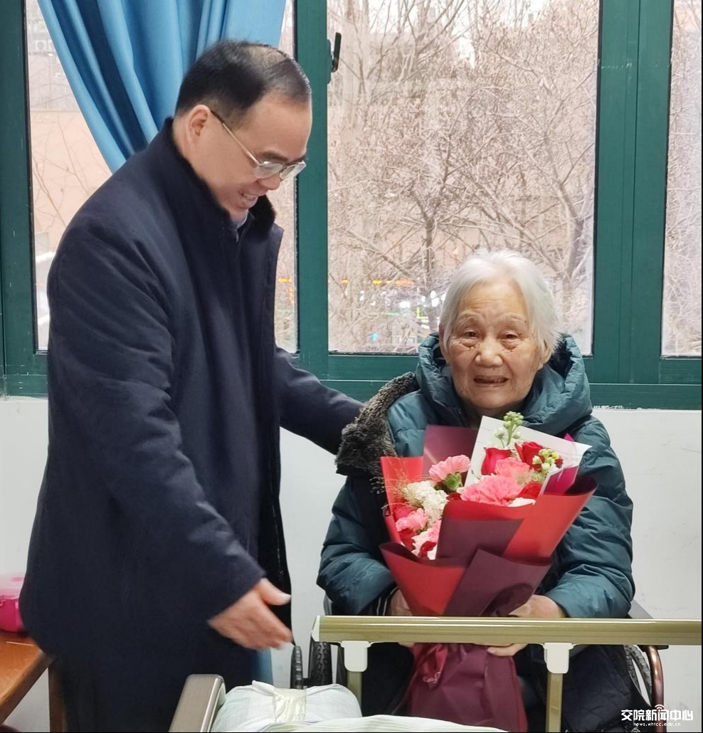 “给您拜个早年!祝您新春愉快、健康长寿!”2月9日上午,党委书记向家文在离退休工作处处长林望春、副处长唐明慧的陪同下,专程前往看望离休干部王芝琴,与她亲切交流,详细询问身体恢复情况与日常照料细节,反复叮嘱护理人员和工作人员,要时刻关注老同志的身体状况与实际需求,用心用情做好照料服务,及时帮助解决生活中遇到的困难与问题。