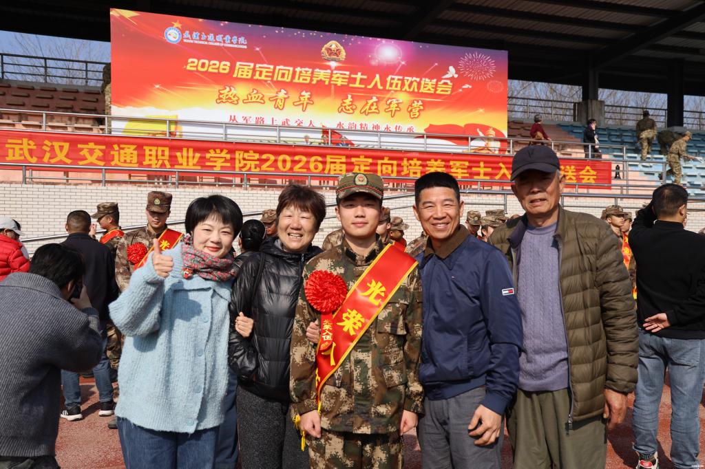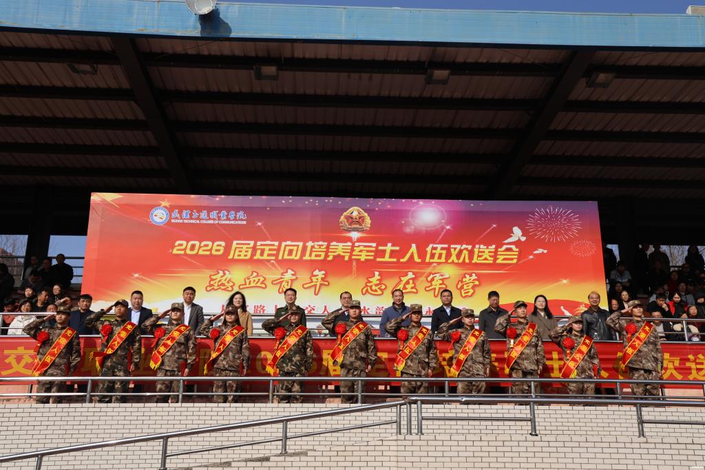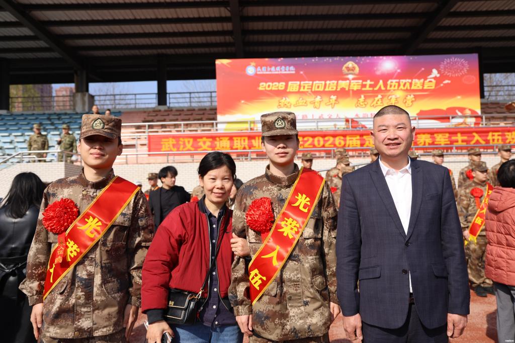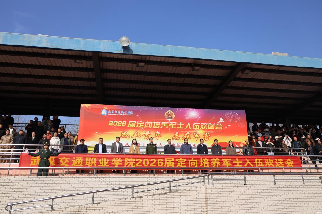 新闻网讯(记者 王勇 通讯员 赵麒翔 叶邱予)3月13日上午,武汉交通职业学院2026届定向培养军士入伍欢送会在南苑运动场举行。648名即将奔赴军营的军士生身着戎装、精神抖擞、整齐列队,以昂扬姿态与母校、亲人分享喜悦。武汉市江岸区人民武装部上校政治委员吕春峰,校党委书记向家文,党委副书记、校长周慎和其他校领导,以及学校校军合作领导小组成员单位负责人,相关学院领导和教师代表、军士生家长代表共同出席欢送会,为即将出征的军士生送行。副校长胡琴主持大会。