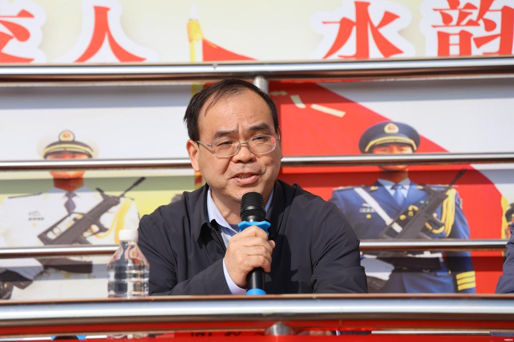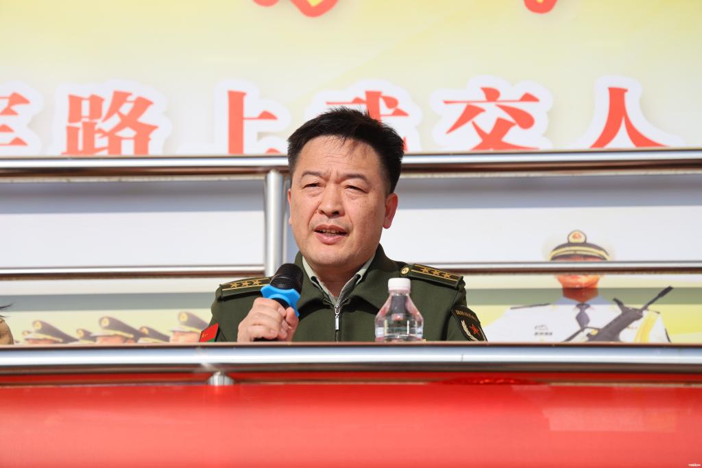 武汉市江岸区人民武装部上校政治委员吕春峰同志代表江岸区人民武装部,向光荣入伍的全体同学表示热烈的祝贺!他肯定了学校在军士生人才培养事业中的突出作用,勉励全体军士生自觉传承武汉这座英雄城市的红色基因,赓续精神血脉,坚定信念、脚踏实地,练就过硬本领,学着干、比着干、抢着干,扛起保家卫国的重任!