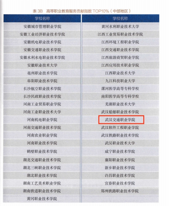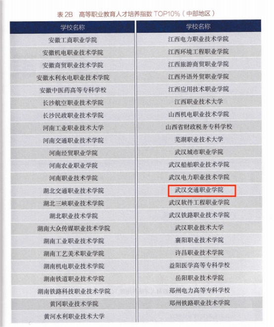 学校入选高等职业教育人才培养指数TOP10%(中部地区)