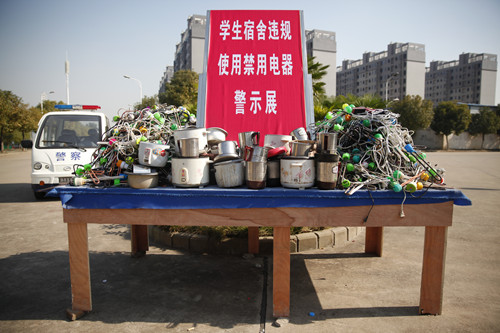 图为:学生宿舍违规使用禁用电器警示展