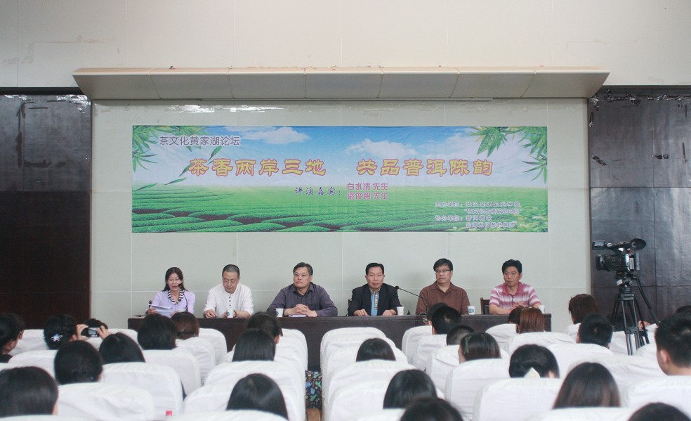 5月9日,由我校茶文化传播研究中心主办的首届“茶文化黄家湖论坛”如期举行。这是武汉地区高校第一个茶文化专业论坛。本次论坛邀请了全国政协委员、世界茶文化交流协会永久荣誉会长、全球十大普洱杰出人物、香港著名普洱茶藏家白水清先生,台湾< 茶艺 普洱壶艺>总编辑,“围壶--中生代普洱茶高峰论坛”秘书长梁俊智先生,对校内外从事茶艺教学的师生和20多家茶企经营者,分别从“普洱茶的品鉴和收藏”和“解读普洱茶文化”两个方面进行了讲演,并回答了现场听众关于普洱茶的提问.
