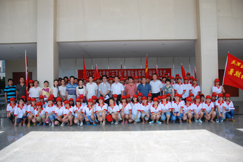 (赵黎浠)喜迎十八大,实践促成才。7月2日下午,我院在教学楼前举行2012年武汉交通职业学院大学生暑期社会实践活动出征仪式。学院副院长杨道远、院党委学工部部长薛传领、各系部党团总支书记以及所有院级重点实践团队的指导老师、队员参加出征仪式。院团委负责人林阳主持出征仪式。