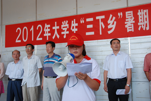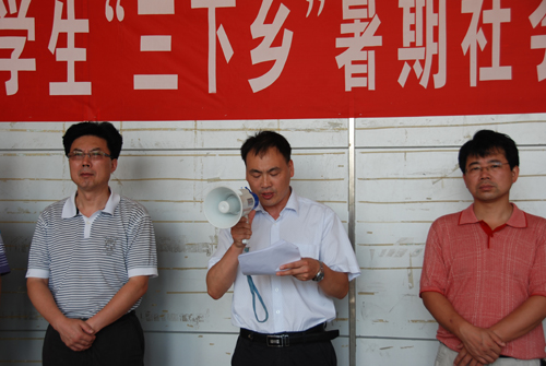 副院长杨道远为出征仪式致辞。他代表学院党委和行政对即将奔赴祖国各地进行社会实践的同学们表示亲切的问候,并对大家提出三点希望:一是在实践中虚心向人民群众学习,全面提升素质,增强本领;二是要在服务基层和社会的实践中,发挥自身特长,彰显人生价值;三是要本着爱校之心,树立良好形象,并增强安全意识,确保个人安全。