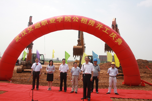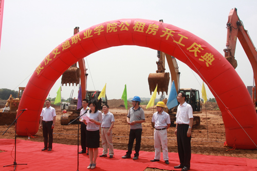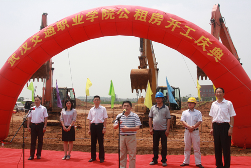 党委书记吴显富为开工庆典致辞。他代表学院党委和行政向为公租房开工庆典如期举行辛勤工作的同志们表示感谢。他指出,2012年6月18日是继2006年8月13日黄家湖新校区正式开工之后我院建设发展历程中第二个具有纪念意义的日子。我院公租房的建成将极大改善教职工的生活条件,推动学校教育管理工作再上新台阶。公租房项目的建设既是一项民生工程,又是一项提高人才培养水平的质量工程。吴书记还对公租房项目建设提出四点要求:一是确保施工质量。工程质量的确保是第一要务,它关系到全体教职工的切身利益;二是加快施工进度。以保证质量为前提,加快施工进度,争取在明年教师节完工。三是加强民主管理。专门成立公租房管理委员会,及时反映相关意见、想法和建议,确保公租房保质、保工期完成。四是保证施工安全。既要保证施工技术和人身财产的安全,又要强调廉政纪律,确保党风廉政建设的各项制度落到实处。