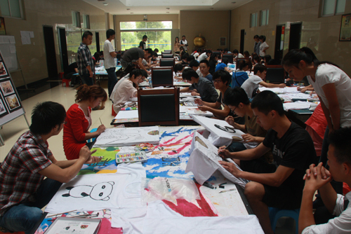 比赛期间,我院教师楼一楼宾客如云,原来大家是对艺术系手绘T恤比赛慕名而来。各参赛选手或独当一面,或是团队协作,短短两个小时,可爱的功夫熊猫、精彩的动漫、团队创作的神奇四侠,在作者笔下熠熠生辉,令观者赞叹不已。更有一些同学充分发挥想象力进行现场创作,不论是人物写生,还是景物描绘,无一不展现出艺术系寻找美、发现美、创造美的专业特点。