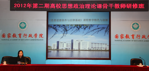 5月3日,由中宣部、教育部举办的2012年第二期高校思想政治理论课骨干教师研修班在北京开班,全国90多所高校共100人参加了培训,教育部副部长李卫红、教育部社科司司长杨光、国家教育行政学院副院长等领导参加开班仪式并作了重要讲话。我院思想政治理论课部谭妤晗老师参加了此次培训。5月7日,谭妤晗老师作为全国高职高专院校代表在会上作了经验交流。在大会上作交流发言的还有北京邮电大学、吉林大学等7所高校。