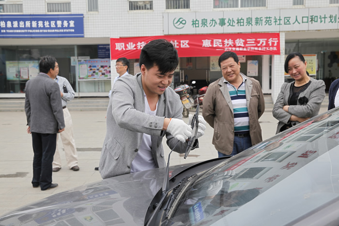 根据村民们的实际需求,学校组织了电子与信息工程学院、汽车工程学院、旅游与商务学院、艺术学院相关专业的老师与同学们,在柏泉新苑社区广场开展了职业技能进社区活动,二十几名师生们将专业与实践相结合,帮助当地居民们解决问题,并传授一些专业技能。