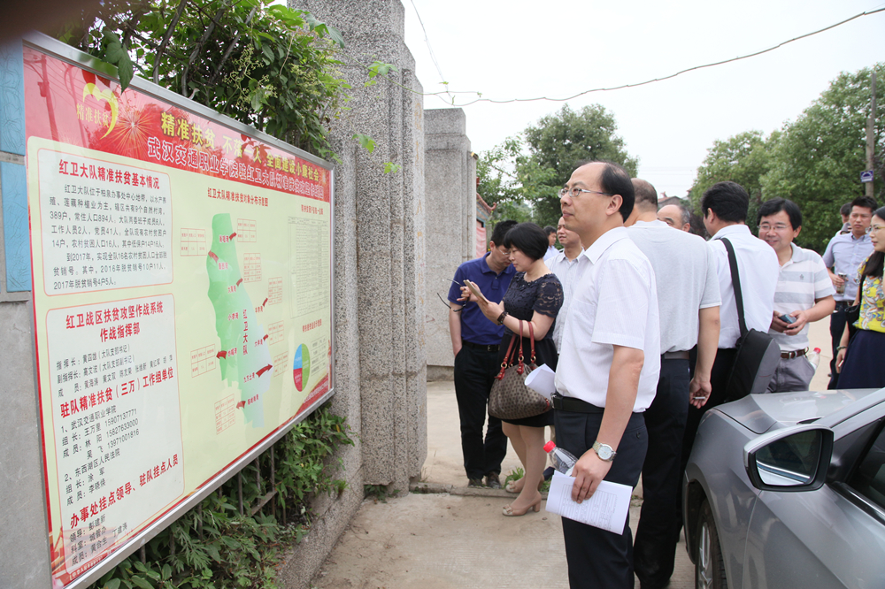 为切实服务好学校精准扶贫联系村——柏泉农场红卫大队,将精准扶贫工作规范化、精细化、责任化,6月7日,校党委副书记张心宇带领全校各党总支、直属党支部书记和党委工作部、校工会负责人,赴学校精准扶贫联系村柏泉农场红卫大队开展考察调研活动,结穷亲、帮穷户、助脱贫,把脉致贫原因,共商脱贫措施,受到当地群众热烈欢迎。