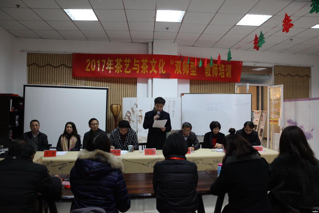陆羽茶文化研究会会长刘云魁教授作为教师代表发言,他指出这是在武汉乃至湖北省人才培养的重要阵地,高校首次举办茶艺与茶文化的教师培训,对茶文化的普及与对大学生的培养有着重大意义;武汉生态职业学院冯时老师作为教师代表发言,她希望通过此次培训争做双师型教师、弘扬民族文化,同时承诺端正学习态度、认真学习、加强交流、广交朋友、结合岗位确保实效;湖北省职业教育旅游教育指委秘书长、武汉商学院院长薛兵旺教授对培训提出了具体要求;武汉市人力资源社会保障局旷卫锋主任希望全体学员能够自觉的把此次培训内容应用到教学中,珍惜机会、学以致用,推动湖北省茶文化更好更快的发展。