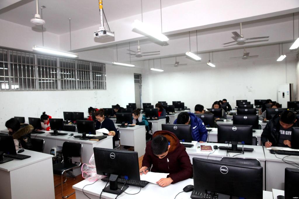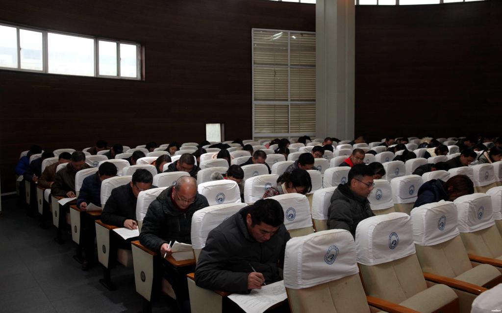 根据学校实际情况,本次活动以党总支为单位,在行政楼、教师楼、图书馆、教学楼等地进行闭卷考试。测试包括《中国共产党章程》和《十九大报告》的内容。测试现场,全体教职员工认真思考作答,在规定的60分钟答题时间内全部完成。