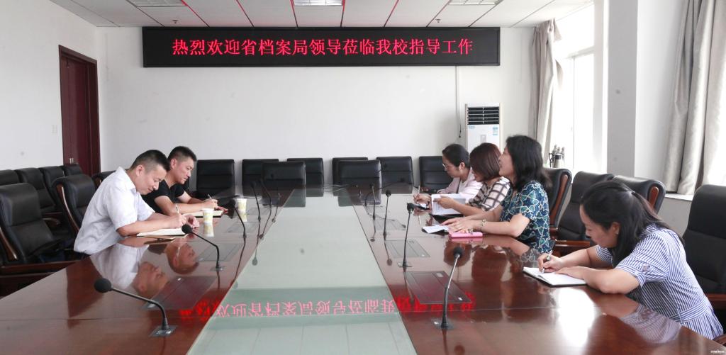 新闻网讯(通讯员 周璞)9月13日下午,为顺利通过明年档案目标管理“省一级”的复核,应学校档案馆邀请湖北省档案局经济科技档案业务指导处副处长汪三军、副处级调研员赵岩来校检查指导工作。副校长梁世翔接见了汪三军处长一行,档案馆馆长崔敏、副馆长袁霞、王文静及其他工作人员陪同。