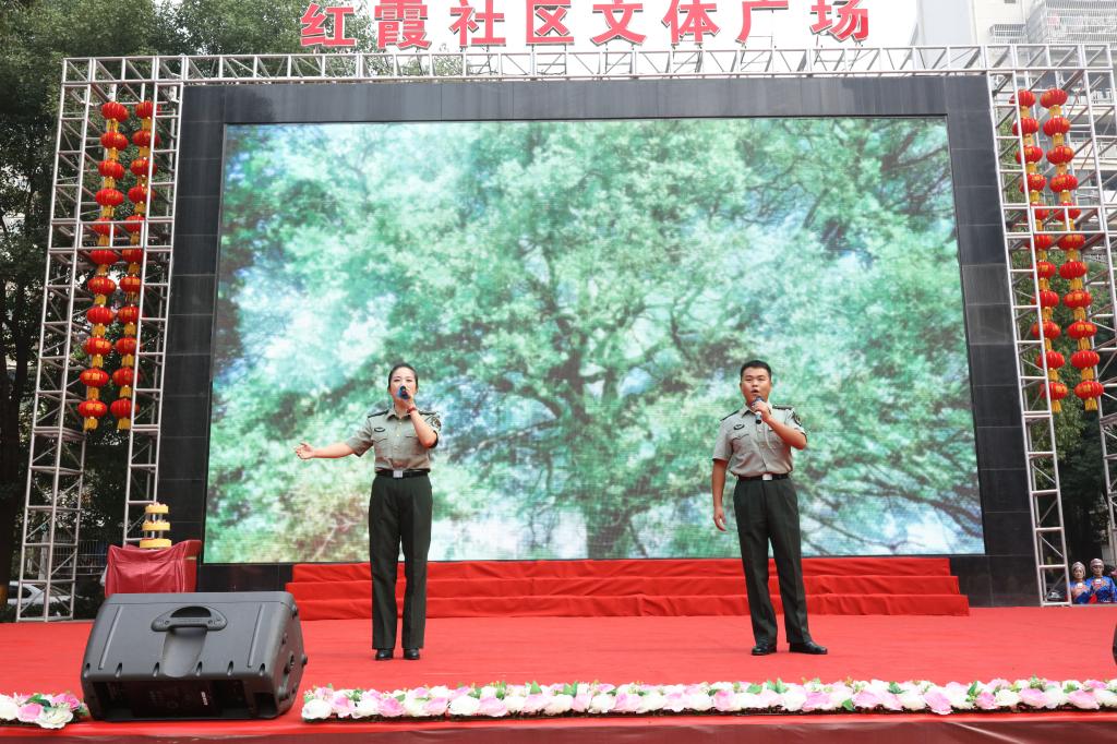 现场氛围热烈,此次活动在我校教师叶妮娅和船运学院士官班学生黄淼的双人合唱《我们的新时代》一曲中拉开了帷幕。另外,与我校达成共建项目的徐家棚街三角路社区、喻家湖社区,带来了时装表演《芙蓉雨》、藏舞《在那东山顶上》,均赢得了观众热烈的掌声。台下一位名叫郑红的阿姨说:“这次演出节目非常精彩,大家看得津津有味,丰富多样的节目给我们带来了美的享受。”