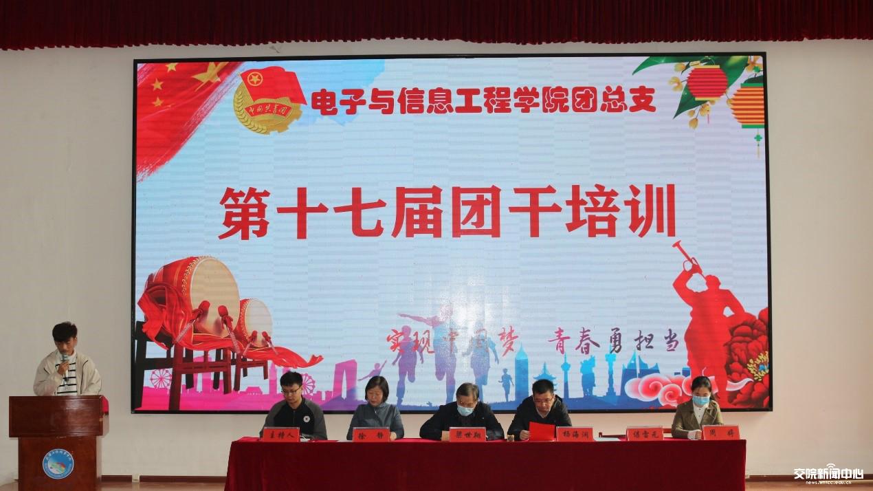 新闻网讯(通讯员 汪云凤)11月11日中午,电子与信息工程学院举行了第十七届团干培训开班仪式,学校副校长梁世翔、教务处处长兼学院思想导师团团长杨海澜、党总支书记徐静参加了开班仪式。开班仪式由学院团总支书记石临风主持。