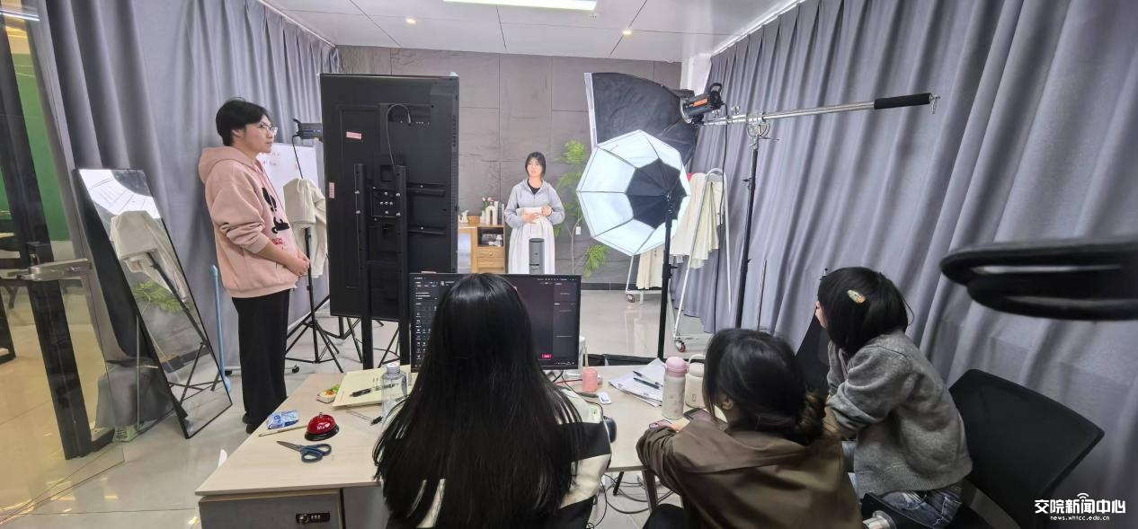 “本次项目的核心亮点在于‘短视频内容引流’与‘直播现场转化’的双轮驱动、协同作战模式。”经济管理学院电子商务专业教研室主任王然说。短视频内容组的学子深入企业面料库、设计工坊与生产线,深挖品牌故事与工艺亮点,策划拍摄了《探秘天门羽绒服的108 道工序》《一件衬衫的优雅之旅》等系列主题短视频。通过场景化叙事、知识科普与穿搭教程,在抖音、小红书等平台高效构建品牌认知,为直播活动蓄积精准流量,其中一条展示非遗工艺与现代服装融合的视频斩获超百万播放量,直接带动品牌搜索指数大幅飙升。