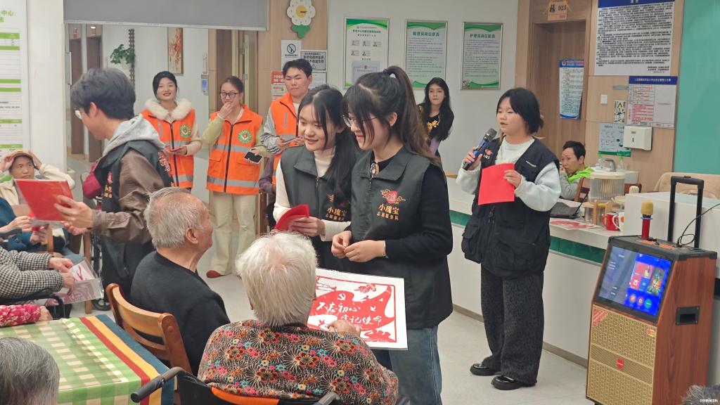 新闻网讯(通讯员 郑广东)为深入落实湖北省青年志愿服务“社区计划”及校团委2026年3月社区行动部署,聚焦“一老一小”重点群体,扎实推进“朝夕相伴”智慧助老与“共创美好社区”项目落地,3月,武汉交通职业学院交通文旅学院青年志愿者协会联合“小青宁”志愿服务队、“小瑰宝”志愿服务队、“飞young”剪纸社团,走进黄家湖社区养老院,开展以“弘扬长征精神,传承红色基因”为主题的社区志愿服务活动。