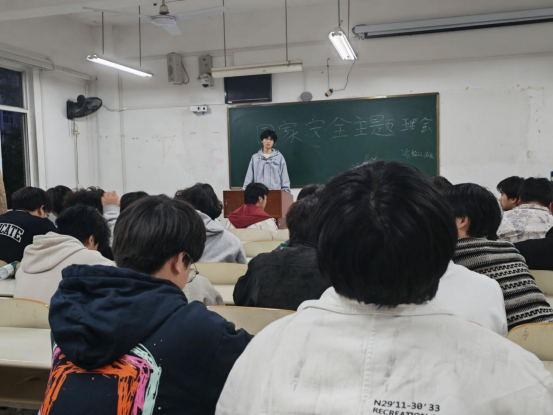 大课结束后,各班班长利用当晚晚自习时间,与全体同学一同观看“千万师生同上一堂国家安全教育课”回放,开展国家安全教育宣讲,并围绕“日常生活中的国家安全”“防范间谍行为”“保守国家秘密”等话题,组织同学开展互动问答。