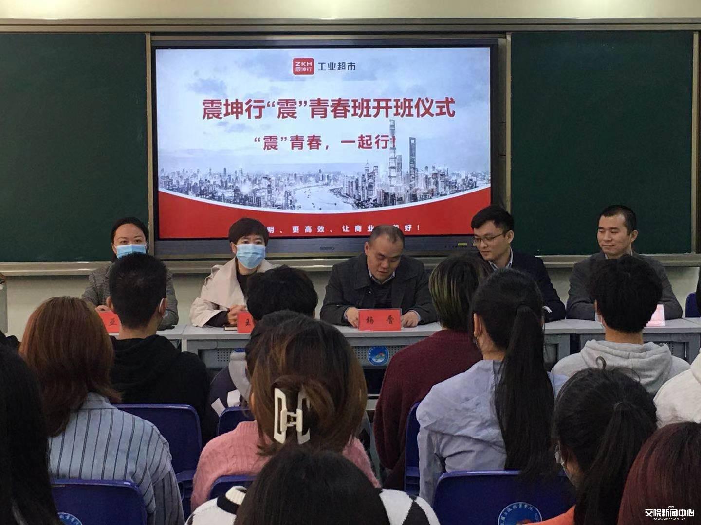 新闻网讯(通讯员 周佳慧 石畅)4月9日,物流学院2022届“震青春班”开班仪式在我校教学楼南207顺利举行。“震青春班”是我校和震坤行工业超市有限公司首次合作设立的现代学徒制班,通过层层选拔面试,最终有36名同学进入“震青春班”。震坤行人资负责人周思伟、政委陈益、武汉总仓负责人喻春艳、物流学院院长杨晋、党总支书记王静敏、副院长王亚男等出席开班仪式。