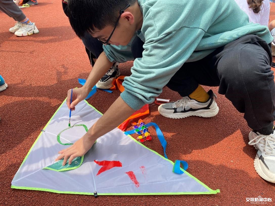 新闻网讯(记者 汪云凤)4月15日下午,阳光和煦,微风习习。走近南苑操场,红色的塑胶跑道上铺满了一张张素白的风筝,同学们三三两两席地而坐,手执画笔,肆意挥洒,在素体风筝上勾画着美好的祝福与青春的梦想。