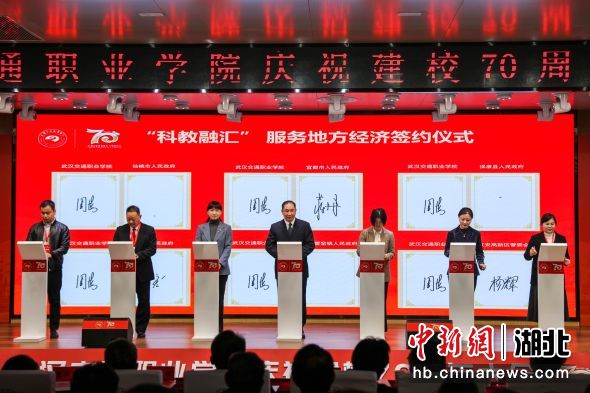 本次大会举行“科教融汇”服务地方经济签约仪式,武汉交通职业学院与湖北省12个地市州县代表及企业代表签约。(完)