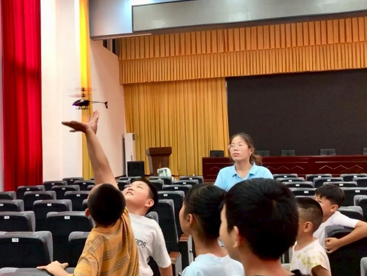 在“小候鸟”志愿服务队的统筹安排下,姜曼清结合专业特长与学院资源,精心设计了一系列科普课程。她亲手制作了炫酷的“彩灯”飞机模型,课堂上,当模型亮起五彩灯光的瞬间,孩子们的惊叹声此起彼伏。她耐心讲解基础飞行原理与电路知识,引导孩子们动手组装小部件,让科技的种子在孩子们心中悄然扎根。课余时间,她带来学院提供的3D打印机,向孩子们生动演示从设计图纸到实物成型的全过程。当层层叠加的材料逐渐变成精美模型时,围在打印机旁的孩子们眼中满是惊奇与兴奋。