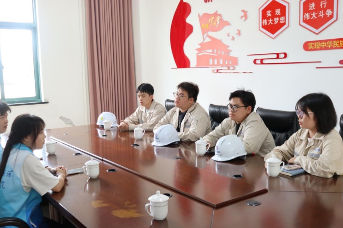 随后,实践团带着求知的热忱,走近了正在公司实习和工作的学长学姐们。大家围坐交流,热切请教船厂工作的酸甜苦辣、从校园到职场的“华丽转身”秘诀以及学习路上的“通关宝典”。22级学姐陈萱苇倾囊相授,分享了初入职场遇到的“风浪”与收获的成长。她鼓励大家:“学习永无止境!新技术、新工艺、新规范如浪潮般涌来,原地踏步就意味着被淘汰!希望学弟学妹们保持那份求知若渴的热情,期待未来在轰鸣的船台、繁忙的码头,看到大家挥洒青春、筑梦深蓝的飒爽英姿!”