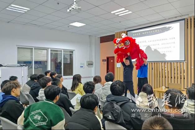 荆楚网(湖北日报网)讯(记者齐一璇 通讯员魏小双)近日,武汉交通职业学院航运学院举办“舞动非遗 传承文脉”龙狮千年非遗文化进校园活动。活动邀请国际级龙狮裁判员、全国群众体育先进个人梅博威教授,携手第十五届全运会舞龙冠军团队,以“理论溯源+实践舞动”的创新形式,打造了一场“沉浸式”非遗盛宴,让千年龙狮文化与航运精神碰撞出别样火花。
