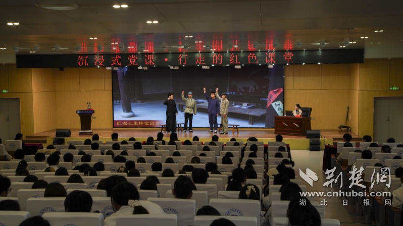 荆楚网(湖北日报网)讯(记者齐一璇 通讯员刘勇)“我已接到省委传达的‘八七会议’精神,南昌已经打响了向反革命武装进攻的第一枪……”舞台上,由学生扮演的共产党人神情坚毅,正低声而有力地传达着决议精神。每一个手势、每一个眼神,都在重现那段峥嵘岁月里共产党人的坚守与担当。